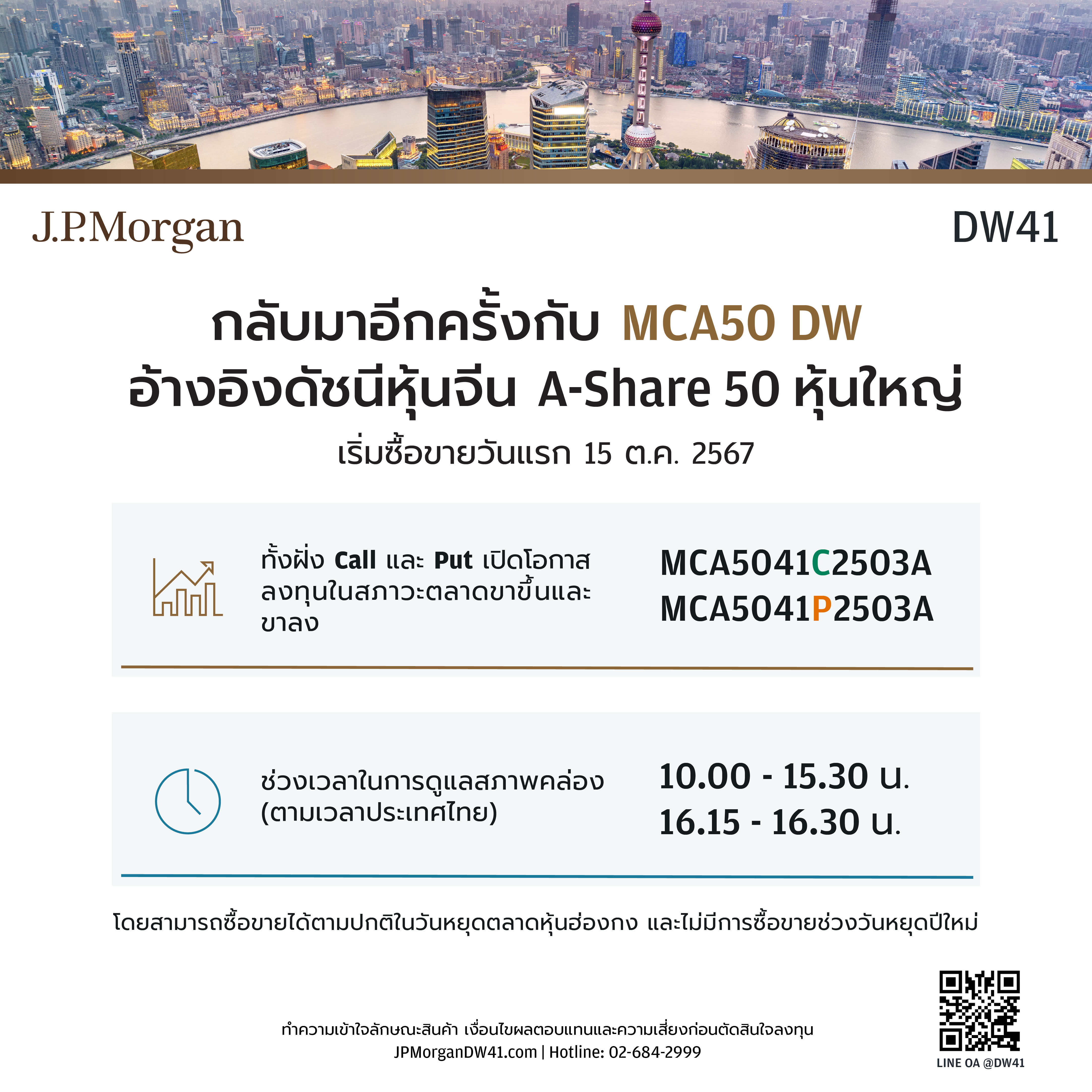 กลับมาอีกครั้งกับ MCA50 DW อ้างอิงดัชนีหุ้นจีน A-Share 50 หุ้นใหญ่