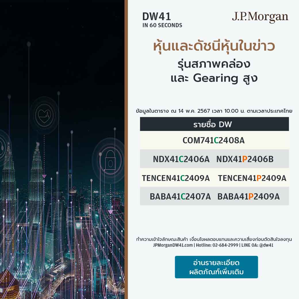J.P. Morgan DW41 Daily Highlight - 14 พ.ค. 2567: ตลาดโลกปรับตัวในกรอบแคบ ก่อนหน้าการรายงานตัวเลข US PPI และสัมภาษณ์ประธาน Fed และ ECB